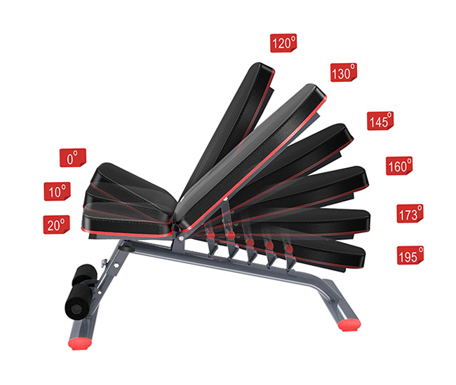 - Yên ngồi tập bọc nệm da cao cấp dày tới 7cm, thiết kế thông minh và có thể điều chỉnh độ dốc dễ dàng để phù hợp cho nhiều bài tập khác nhau. Phần ghế ngồi có 3 mức điều chỉnh và phần tựa lưng có đến 6 góc độ điều chỉnh khác nhau. Bộ phận điều chỉnh rất chắc chắn, đảm bảo an toàn tuyệt đối cho người sử dụng.
