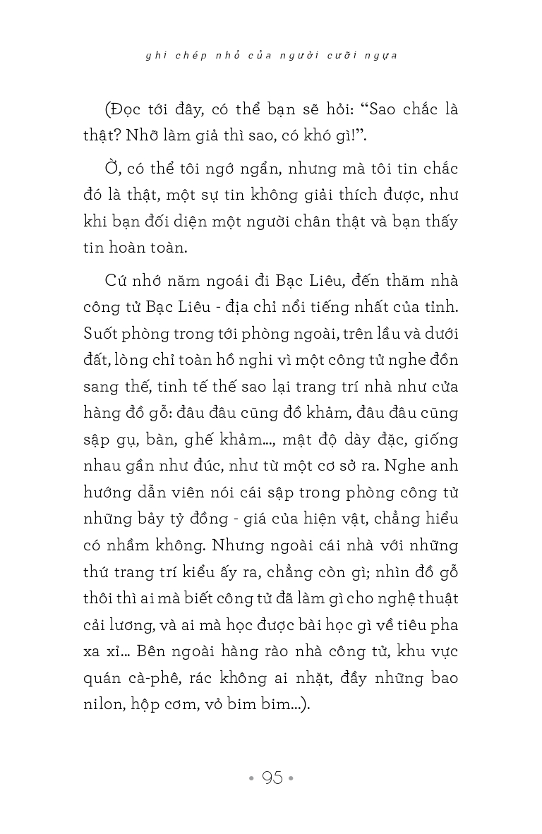 Trong tập sách này, nhiều câu chuyện, nhiều vấn đề, tác giả dường như chỉ làm công việc khơi nó lên để mời người đọc tham dự vào, tự khám phá và giải quyết. Trong