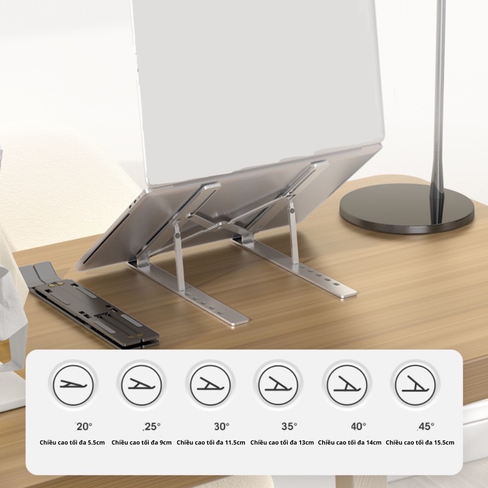 Stand Nhôm Tản Nhiệt Dành Cho Macbook, Laptop Có Thể Gấp Gọn Và Điều Chỉnh 6 Nấc Độ Cao Lucas - Đế máy tính xách tay: Hợp kim nhôm; điều chỉnh; có thể gập lại
