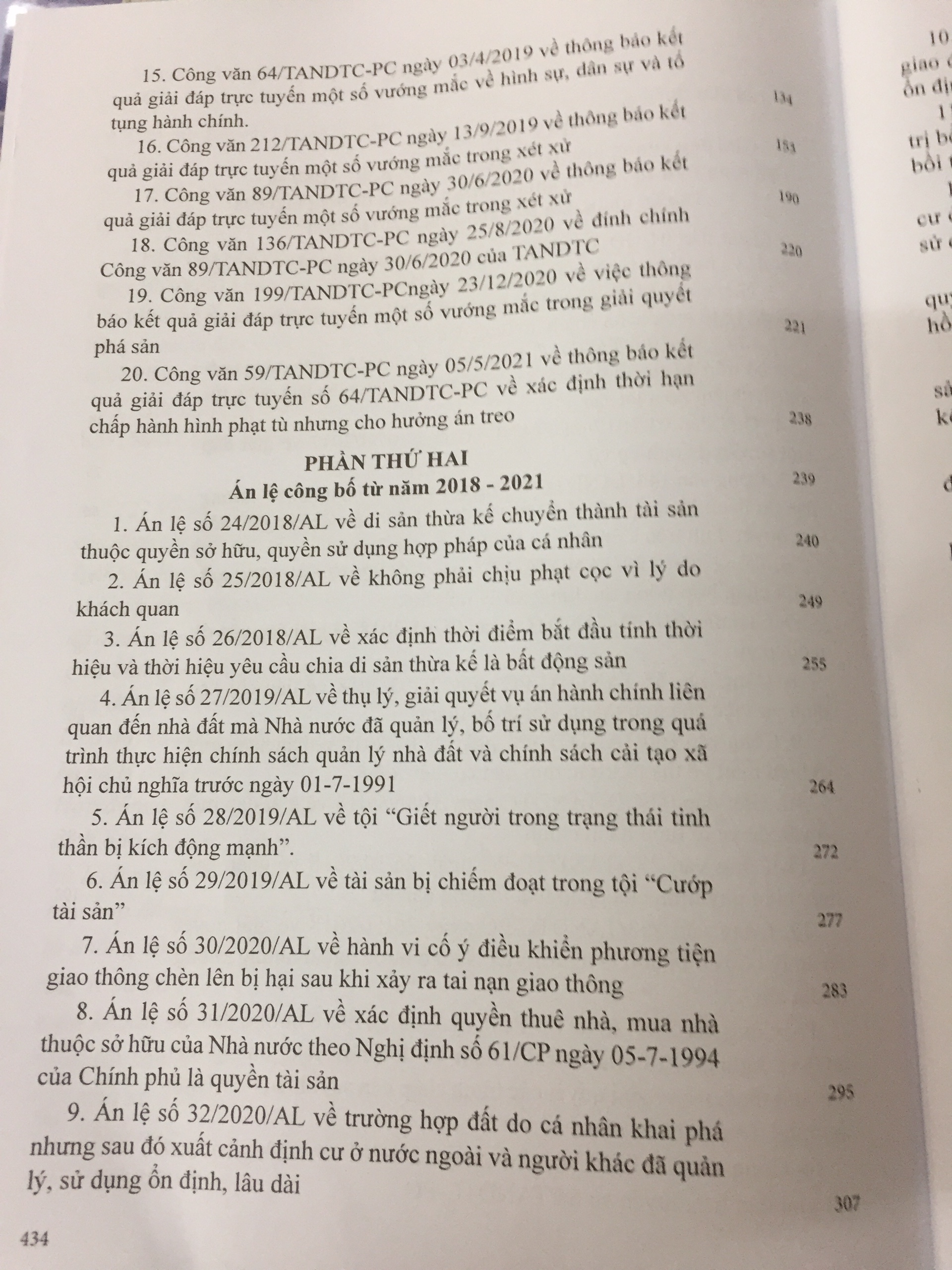 ✨Giải đáp vướng mắc trong xét xử về Dân sự, Hình sự, Tố tụng dân sự Hành chính, Kinh doanh thương mại của Tòa án nhân dân tối cao từ năm 2016 - 2021 và các Án lệ được công bố năm 2020 - 2021