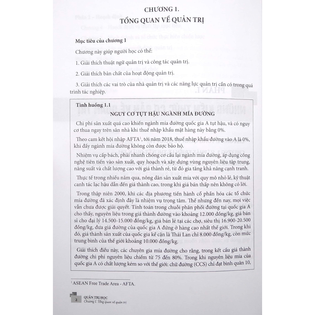 Giáo trình được bố cục thành 3 phần chính với tổng số 12 chương. Mỗi chương bao gồm các nội dung : mục tiêu chương, tình huống quản trị, nội dung chương, tóm tắt, sau cùng là câu hỏi ôn tập