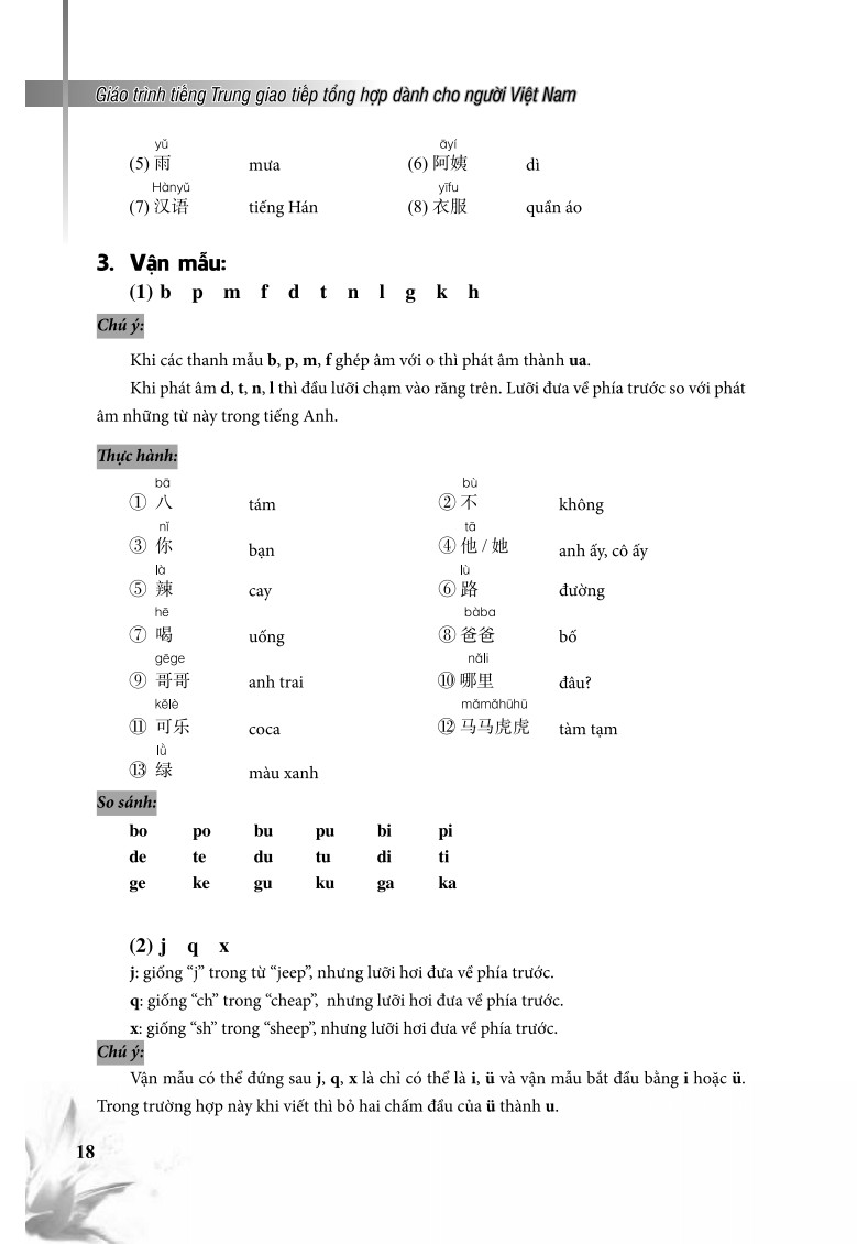 Giáo trình tiếng Trung Giao tiếp tổng hợp dành cho người Việt Nam Cuốn sách Giáo Trình Tiếng Trung Giao Tiếp Tổng Hợp Dành Cho Người Việt Nam có 15 bài, mỗi bài gồm: