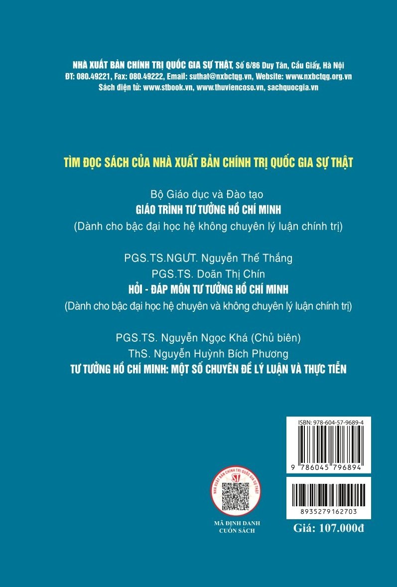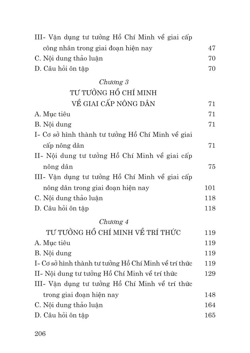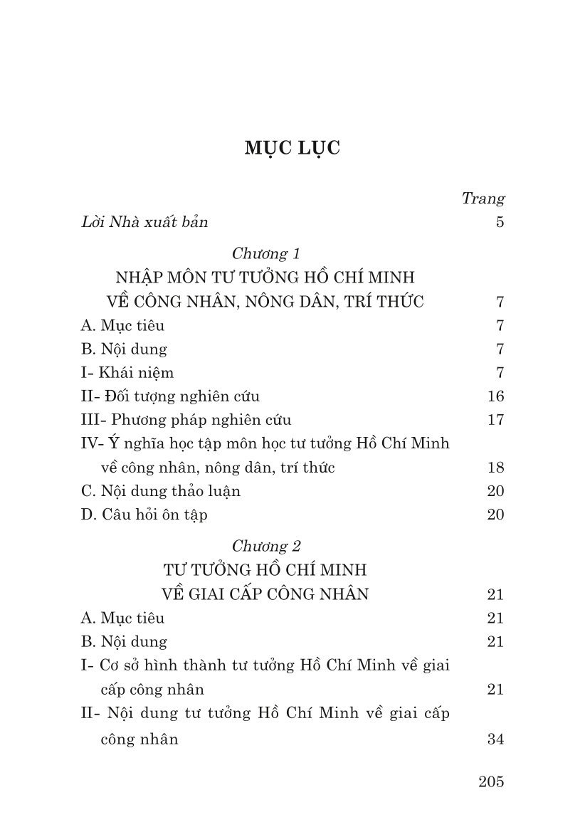 Giáo trình tư tưởng Hồ Chí Minh về công nhân, nông dân, trí thức . Giá bìa: 107.000 Nội dung bao gồm: 1.Chương 1 - Nhập môn tư tưởng Hồ Chí Minh về công nhân,