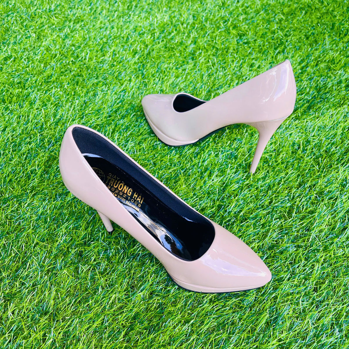 ✨Giày cao gót nhọn 10cm Trường Hải da bóng 2 màu đen, hồng phấn GCG135