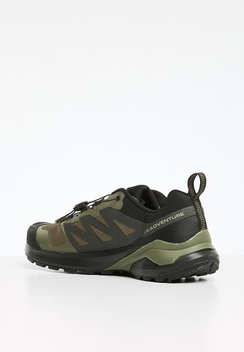 Giày Chạy Đi Bộ Salomon X-Adventure với màu sắc Olive Night/Black/Peat được thiết kế dành cho những người yêu thích hoạt động ngoài trời, mong muốn sự thoải mái, ổn định và độ bám đáng tin cậy