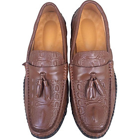 GIÀY MỌI NAM DA CÁ SẤU GAI ĐUÔI NÂU