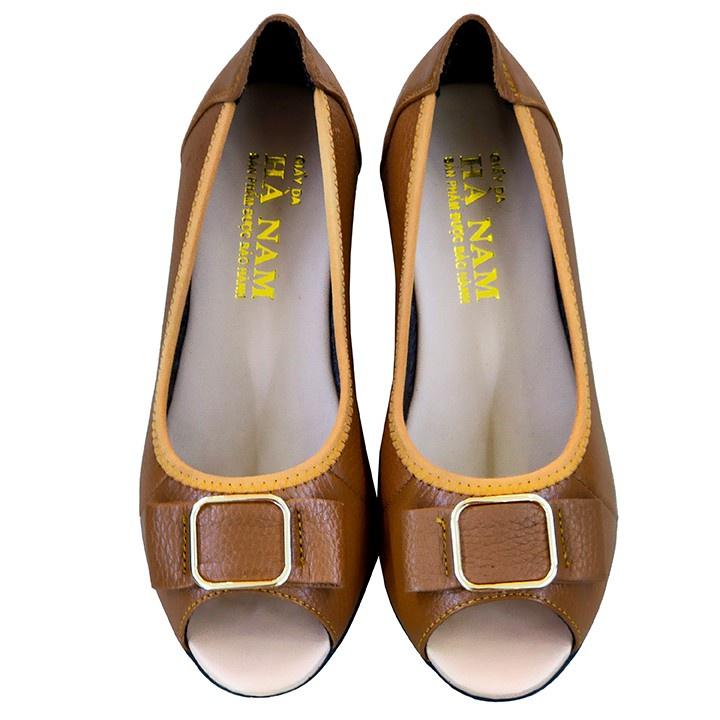 Giày đế xuồng 5cm bigsize hở mũi Trường Hải da bò thật