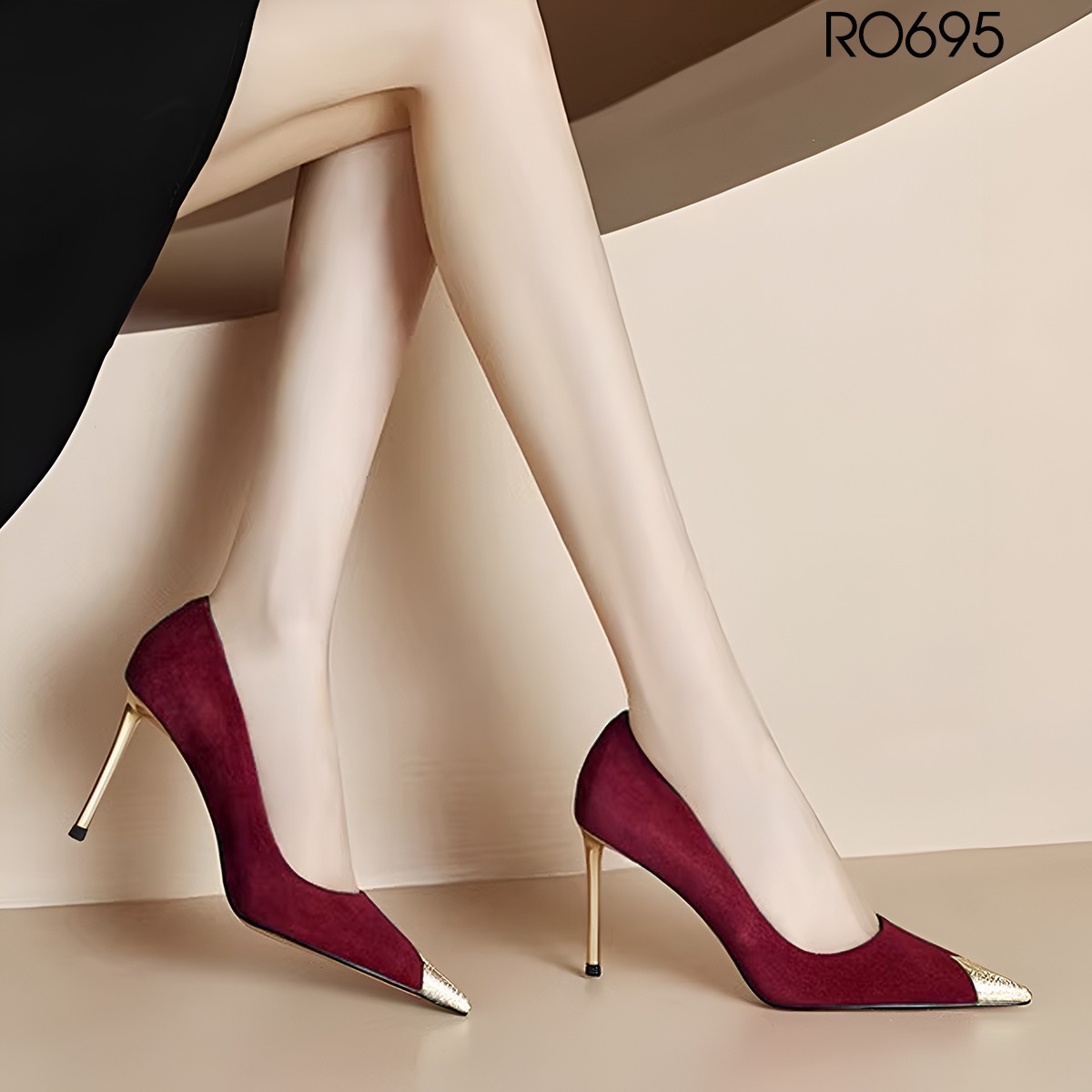 RO722 – Giày cao gót bít mũi hở gót thanh lịch, chuẩn style công sở hiện đại Thiết kế bít mũi nhọn phối quai hậu giúp cố định gót chân, không đau chân khi di
