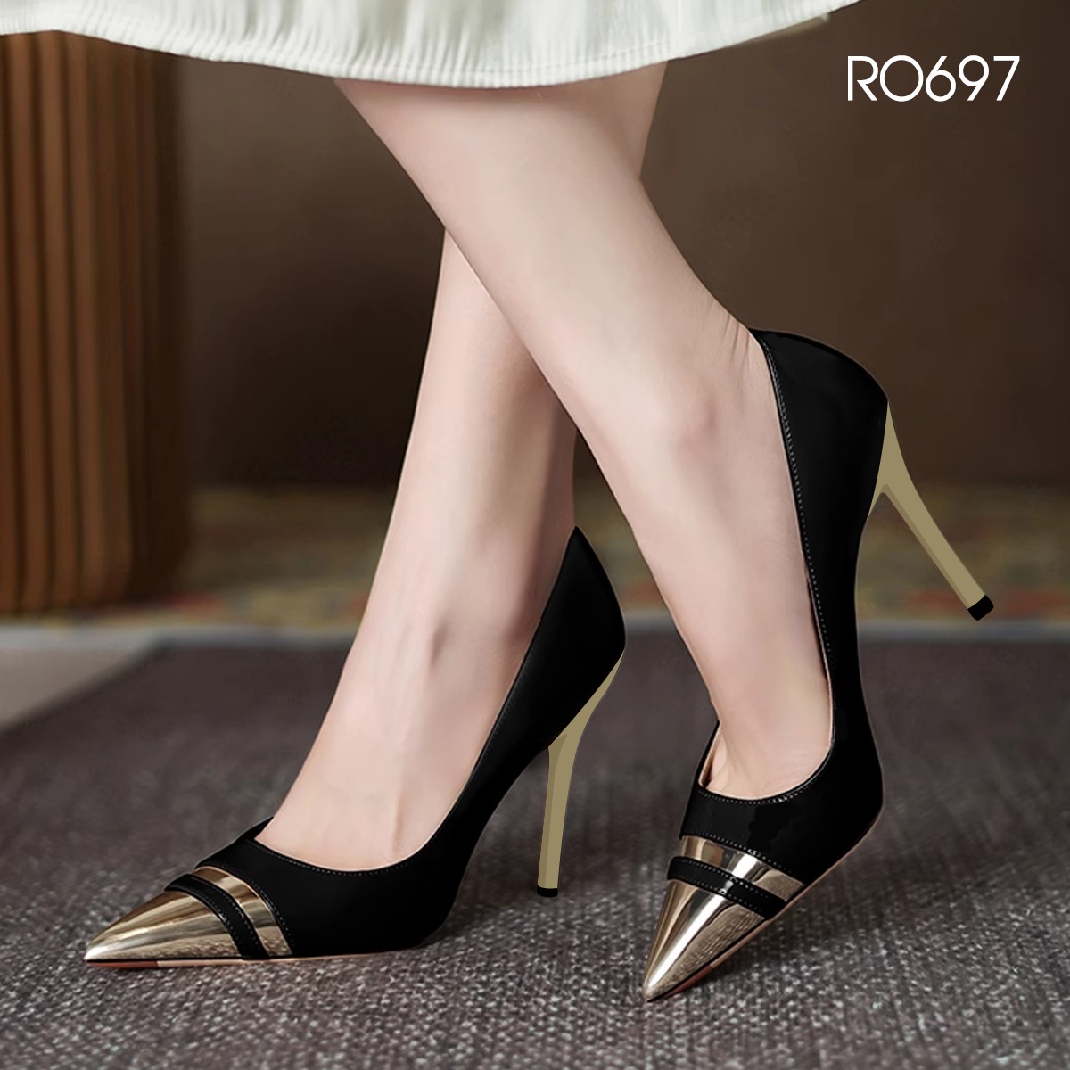 RO722 – Giày cao gót bít mũi hở gót thanh lịch, chuẩn style công sở hiện đại Thiết kế bít mũi nhọn phối quai hậu giúp cố định gót chân, không đau chân khi di