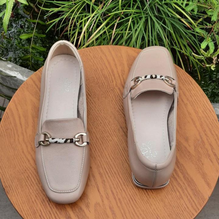 - Tên sản phẩm:Giày lười nữ da bò đế bệt khóa ngang Trường Hải nhiều màu GM123V - Chất liệu: giày được làm bằng da bò thật mềm mại tuyệt đối không bong tróc hay