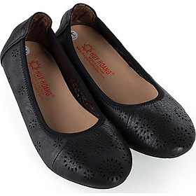 Giày nữ hoa văn Huy Hoàng da bò màu đen 7951