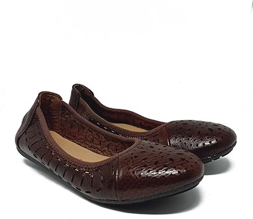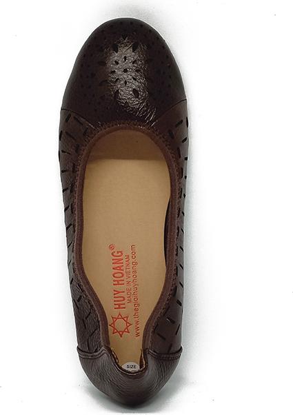 Giày nữ hoa văn Huy Hoàng da bò màu nâu 7949