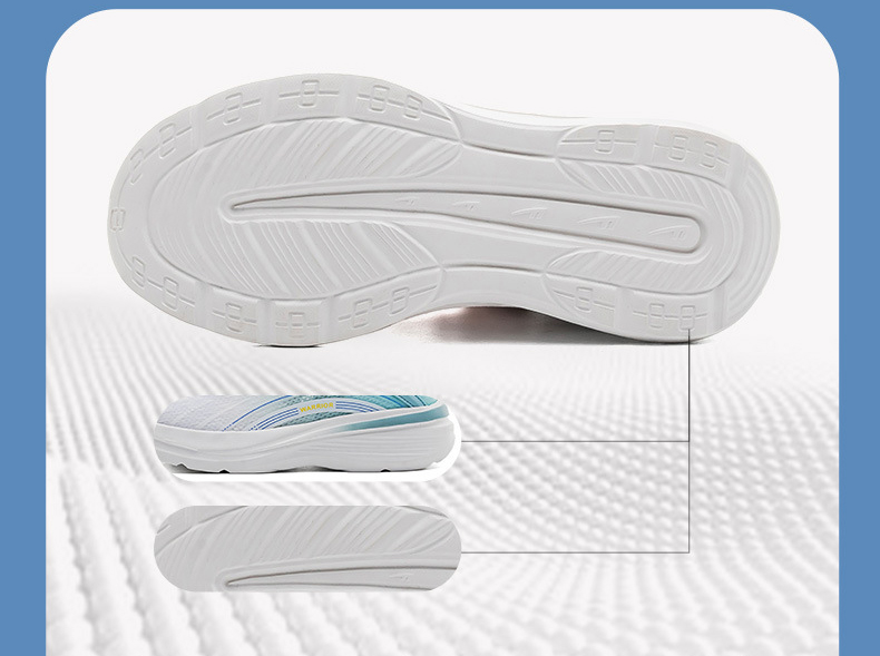 + Đế cao su chống trượt rất tốt. Đi lại nhẹ nhàng tạo cảm giác êm ái. + Trọng lượng nhẹ, thích hợp cho việc di chuyển dễ dàng + Thiết kế thoáng khí, hấp