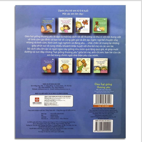 Gieo hạt giống thương yêu (8 tập) là một bộ sách rất dễ thương và thú vị với nội dung viết về tình cảm gia đình và bạn bè vô cùng gần gũi và ấm áp, ngôn ngữ kể chuyện nhẹ nhàng và tình cảm, hình ảnh ngộ nghĩnh và đáng yêu... chắc chắn sẽ mang lại những giây phút vui vẻ cùng nhiều khoảnh khắc tuyệt vời cho bố mẹ và các em bé.