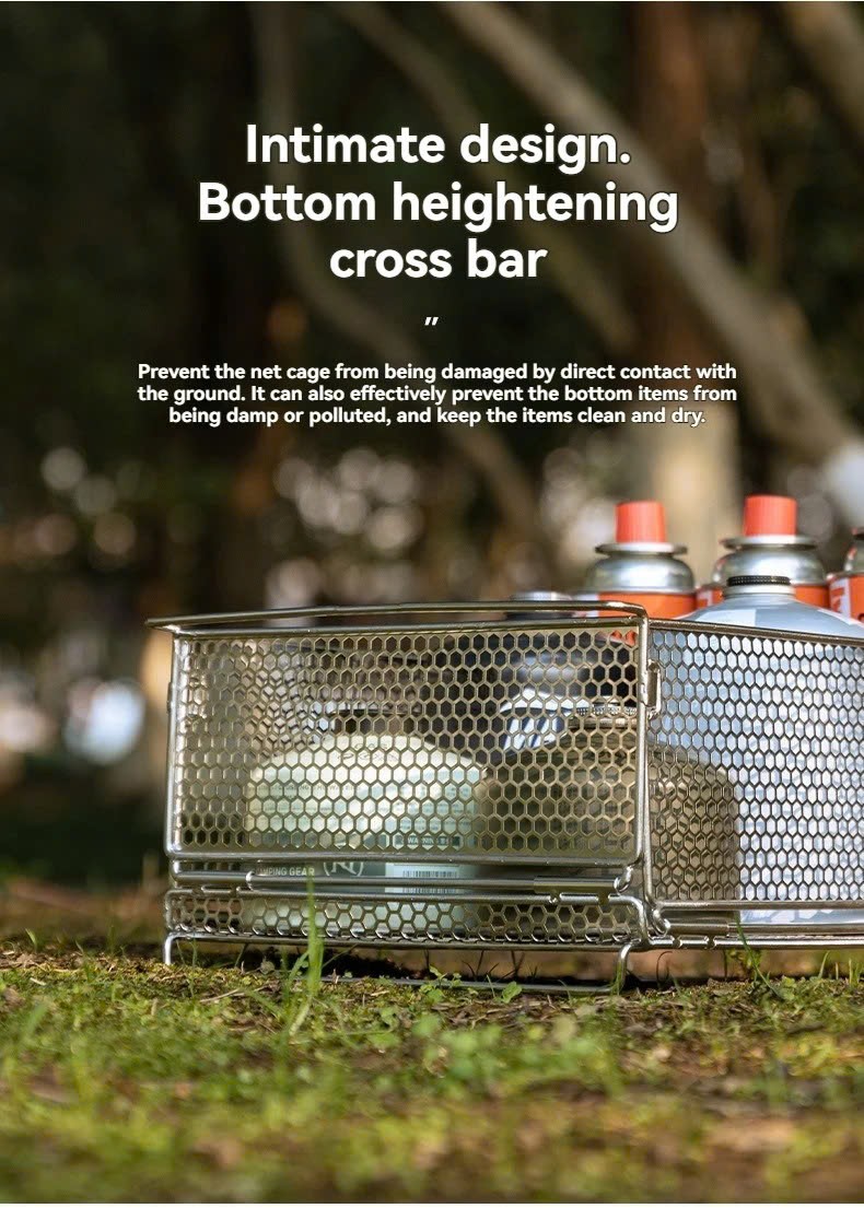- Tính năng: Dùng với Bàn nướng, kệ CK, Khung IGT, Entry IGT, Khay lưới mỏng IGT Giỏ lưới đựng đồ đa năng cho bàn IGT Campingmoon CK-24BF là một giá lưu trữ có thể xếp chồng lên nhau, tạo ra một không gian đơn giản và gắn kết tại khu cắm trại của bạn. Với dung tích lớn 8,5L, khay có thể lưu trữ nhiều đồ cắm trại và thực phẩm, đáp ứng nhiều nhu cầu lưu trữ khác nhau. Xếp chồng nhiều giỏ lưới để giữ cho khu cắm trại của bạn được ngăn nắp, tạo nên vẻ ngoài đơn giản và thống nhất. Độ ổn định cao khi xếp chồng đảm bảo sử dụng không gian hiệu quả. Sử dụng kim loại giãn nở thay vì lưới thép tiêu chuẩn, giỏ lưới có vẻ ngoài chắc chắn và bền bỉ. Lớp hoàn thiện hàn chắc chắn tạo nên sự hiện diện mạnh mẽ, hoàn hảo cho các cảnh ngoài trời. Giỏ cũng có thể được sử dụng như một giá lưu trữ bằng sắt, kết hợp độ bền với thiết kế thời trang.