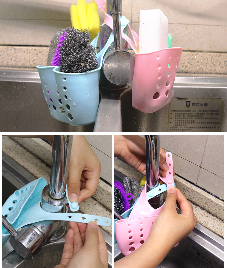 – Giỏ treo đồ có kích thước nhỏ gọn nhưng hữu ích vô cùng. – Có móc treo tháo lắp tiện lợi, có thể treo trên tường, hoặc vòi nước… – Đựng được nước rửa chén, bọt biển rửa chén… giúp không gian bếp thêm gọn gàng, ngăn nắp. – Chất liệu nhựa bền đẹp, dễ dàng vệ sinh sạch sẽ. – Quai đeo có khuy cài chắc chắn giúp bạn treo giỏ ngay trên vòi nước thật tiện lợi. Bạn có thể treo ở vòi rửa bát, vòi sen tắm hay vòi chậu Lavabo đều được. – Bên dưới giỏ có nhiều lỗ thoát nước giữ cho bông tắm, xà bông, giẻ rửa bát hay các vật dụng khác luôn khô ráo, sạch sẽ.