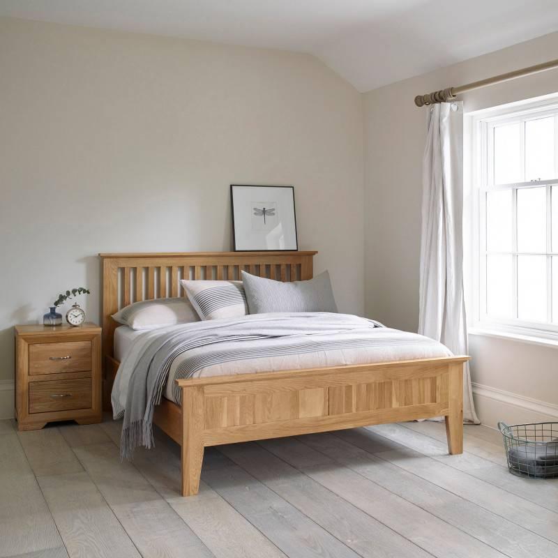 Giường đôi Bevel được chế tác bởi các thợ mộc truyền thống có tay nghề cao và chất liệu gỗ sồi trắng Mỹ nhập khẩu với bề mặt được sơn PU cao cấp luôn luôn đáp ứng được các tiêu chuẩn cao về mặt chất lượng và vẻ ngoài. Thiết kế với kết cấu khung giường chắc chắn, cân đối và chân trụ cắt gọn, kể cả thanh giường được làm hoàn toàn từ gỗ thịt, có thể chịu được trọng lượng lớn, không bị nứt gãy trong nhiều năm. Các sản phẩm thuộc bộ sưu tập Bevel được thiết kế đồng bộ phù hợp với nhiều không gian phòng ngủ khác nhau mang phong cách thanh lịch và sang trọng, hãy tham khảo thêm tại đây.