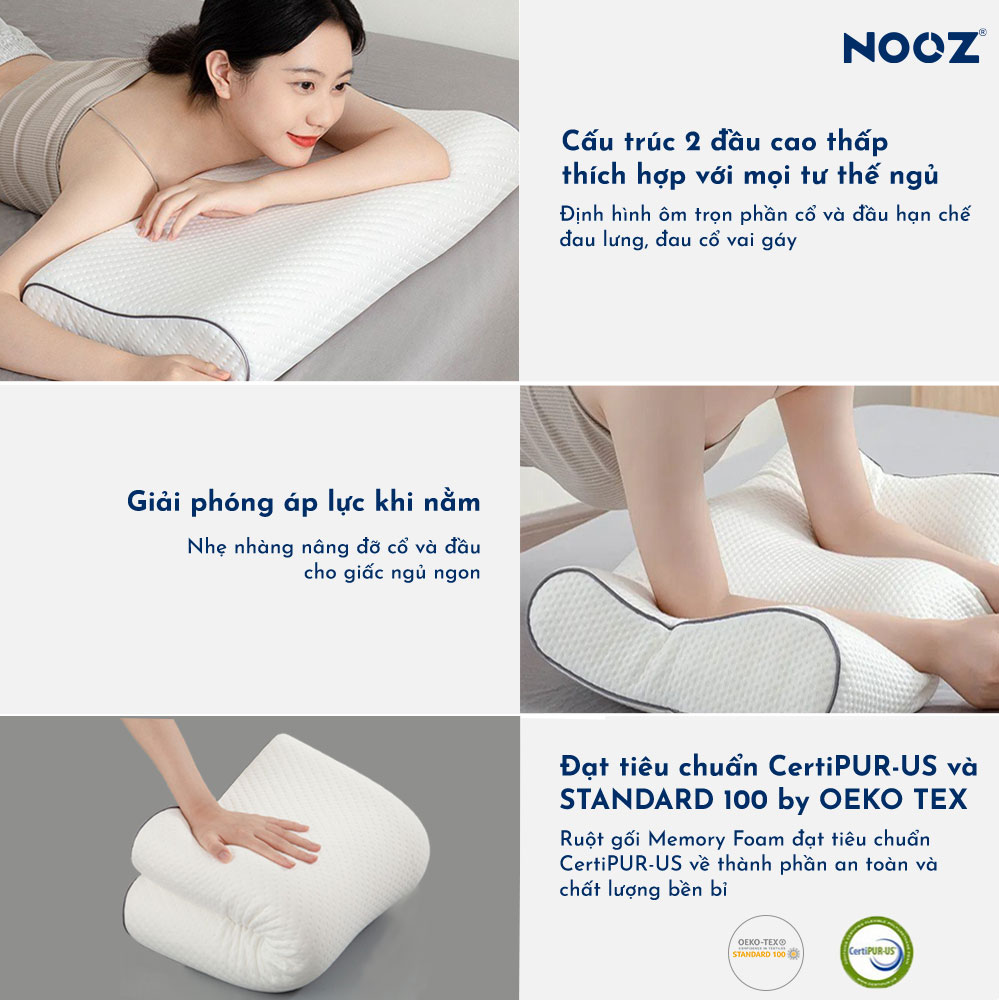 Ngủ ngon và sâu hơn với sự nâng đỡ và thoáng mát từ Gối Memory Foam NOOZ Việc dành 8 tiếng để ngủ trên một chiếc gối quá dày hoặc quá mỏng sẽ làm bạn
