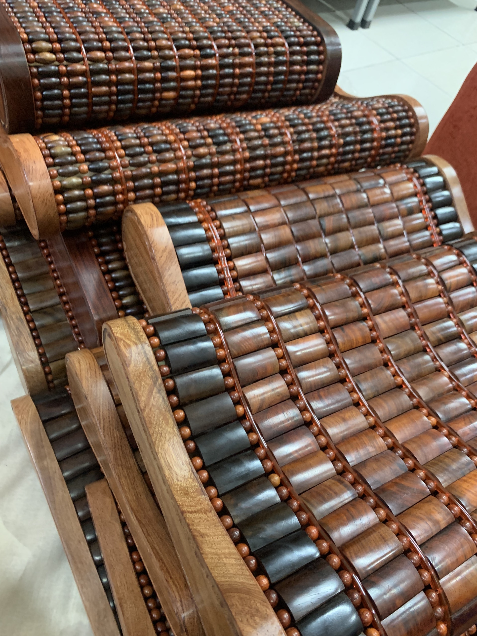 - Chất liệu : Gỗ Trắc tự nhiên Hạt gỗ rắn chắc , có mùi thơm nhẹ , những hạt gỗ chọn và nhặt tỉ mỉ trong quá trình đan gối .