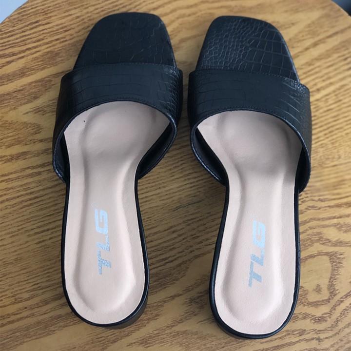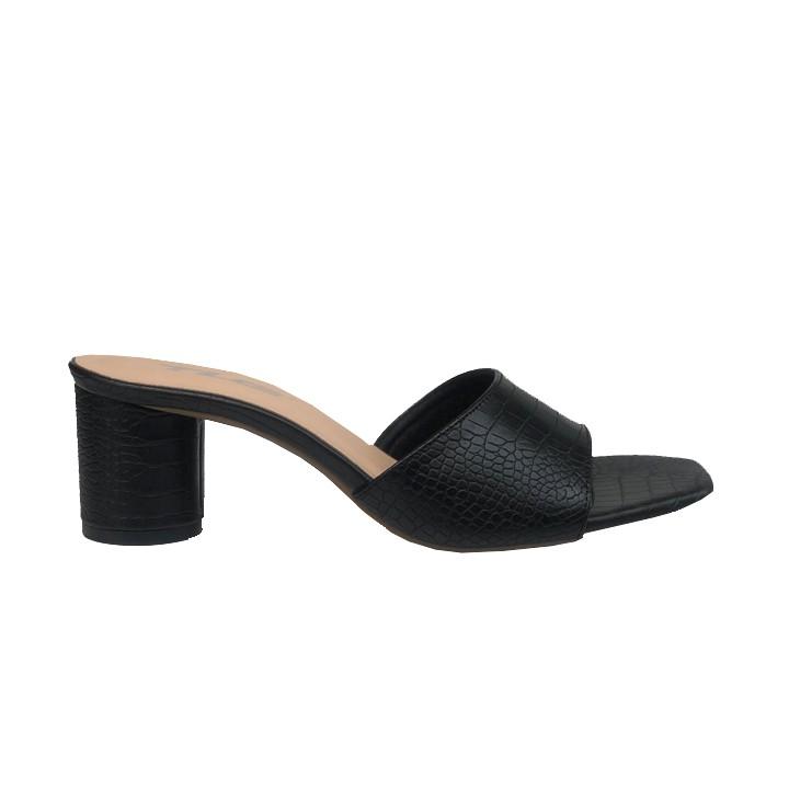 - Dép nữ cao gót quai ngang một bản TRường Hải màu đen gót vuông 8cm da mềm DN139 thiết kế với kiểu dáng ôm chân, thon gọn, thoải mái di chuyển mà không lo