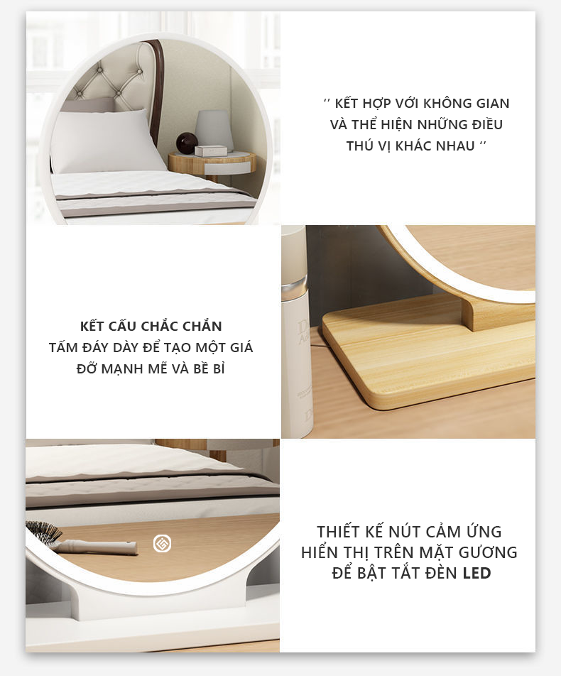 Bàn trang điểm gương đèn LED cảm ứng cho những cô nàng hiện đại