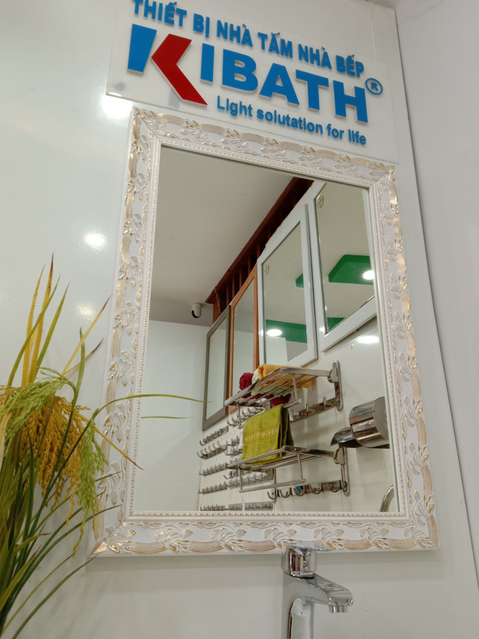 Mua tại TiktokGương soi Kibath khung màu trắng bảng 6 phân họa tiết vàng KT 60x80 cm, KB-129 - Mã số: KB-129 - Kích thước phủ bì 60x80 cm (bảng khung 6 cm dày 2.5cm, kích thước