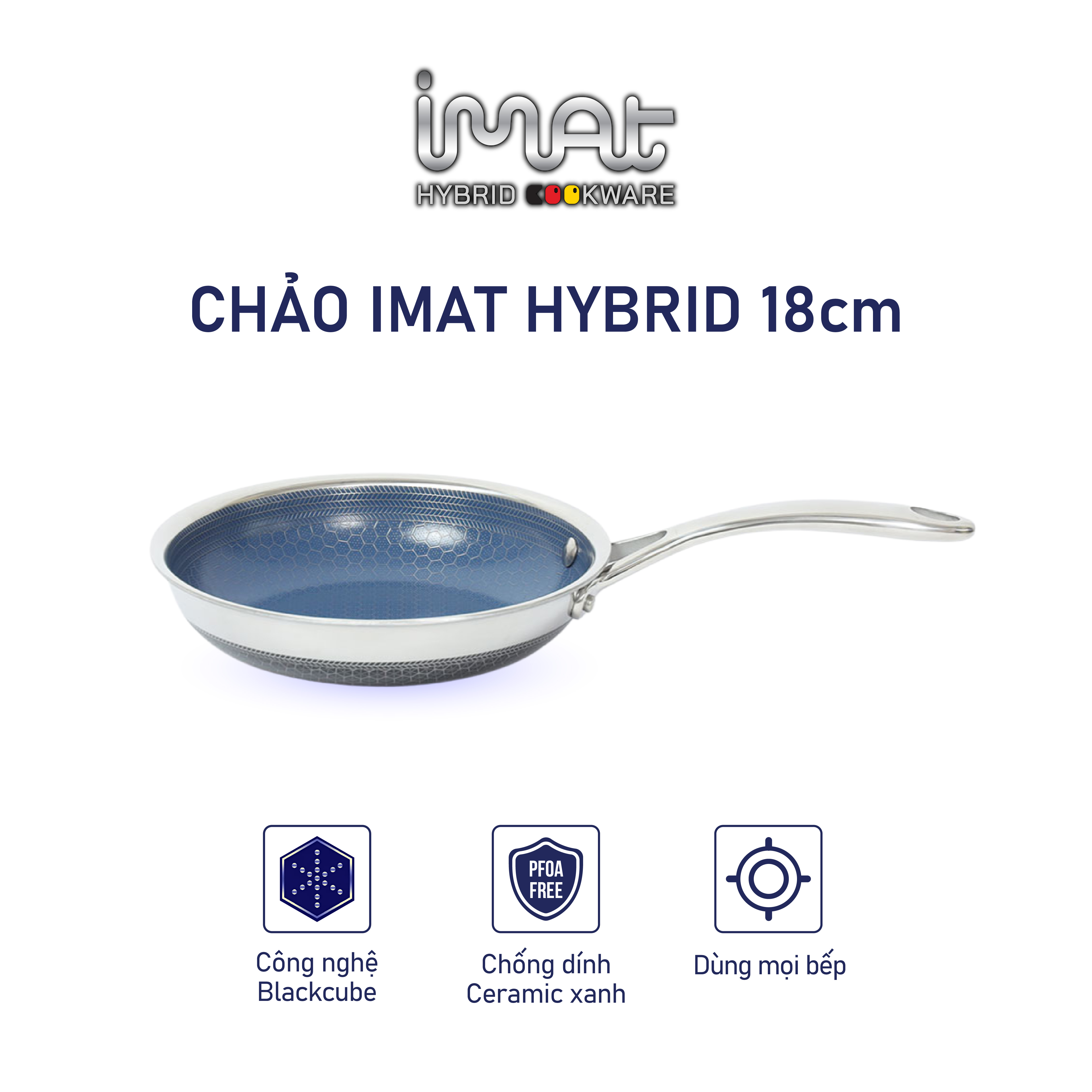 CAM KẾT PHÂN PHỐI SẢN PHẨM CHÍNH HÃNG BẢO HÀNH ĐỔI MỚI CHO LỚP SẢN CHỐNG DÍNH BONG TRÓC TRONG 12 THÁNG. Chảo iMat Hybrid kết hợp giữa inox với chống dính nên đặc biệt