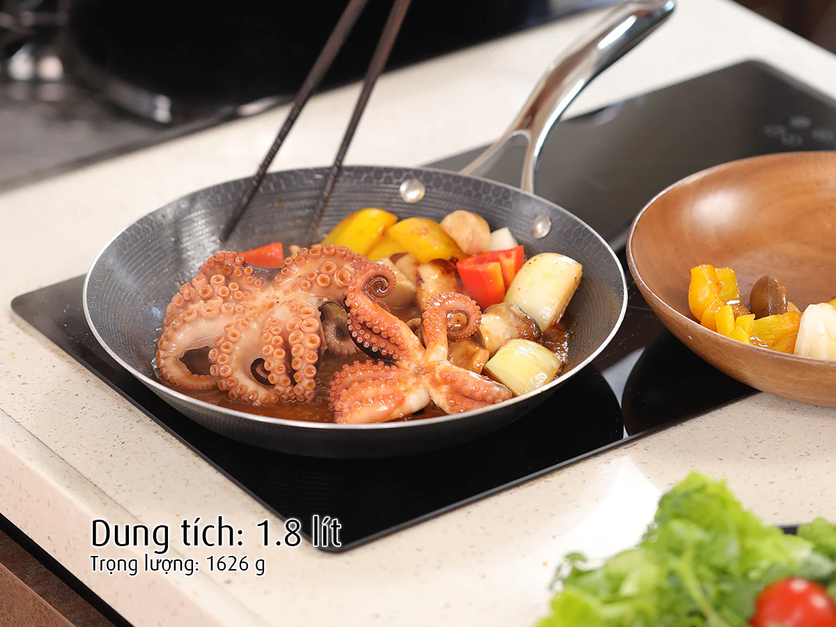 Thiết kế mạnh mẽ và dễ vệ sinh: Thân chảo thẳng, không bo mép, tạo độ bền và dễ lau chùi.