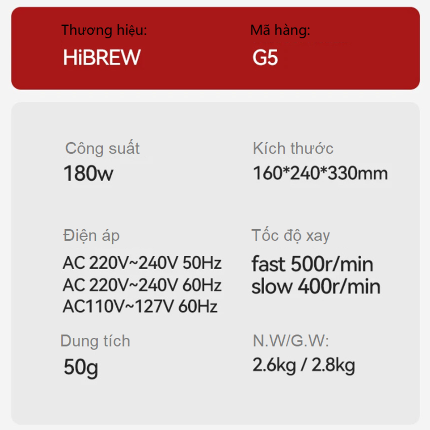 Mua tại TiktokHiện nay, cà phê là thức uống không thể thiếu của nhiều người, nhưng làm sao để thưởng thức được ly cà phê thơm ngon do chính tay mình làm. Giới thiệu Máy xay cà phê chuyên nghiệp Single Dose HiBREW G5. Đáp ứng đa dạng tất cả phương thức pha chế cà phê hiện hành trên thế giới. Một chiếc máy để bàn chuyên dùng cho các barista chuyên nghiệp, đam mê pha chế cà phê chuẩn chỉ.