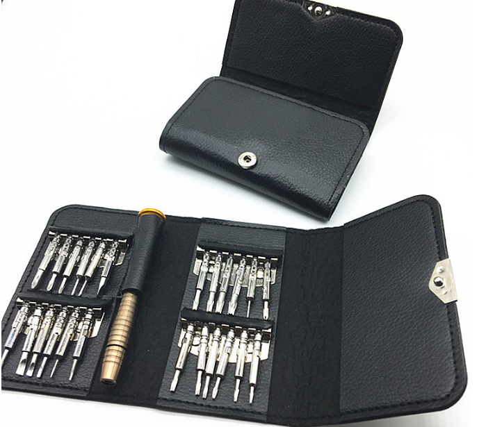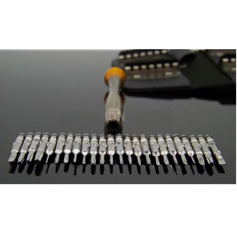 Với bộ tua vít 25 in 1 này đảm bảo bạn sẽ không còn phải lo lắng sửa chữa đồ điện tử khi gặp phải những con ốc, vít siêu nhỏ. Bộ tô vít ví da25in1mang lại cho bạn nhiều tiện lợi khi sửa chữa máy móc hay các thiết bị điện tử cỡ nhỏ trong gia đình. Bộ tua vít với đầu tua vít được làm từ chất liệu thép không gỉ nên rất bền chắc. Sản phẩm có nhiều kiểu đầu vít khác nhau như: đầu dẹt, tam giác, lục giác, 3 cạnh, 4 cạnh, 5 cạnh và 6 cạnh, mỗi dạng đều có đủ các cỡ từ lớn đến nhỏ nên rất dễ dàng cho bạn trong việc sửa chữa đồ đạc.