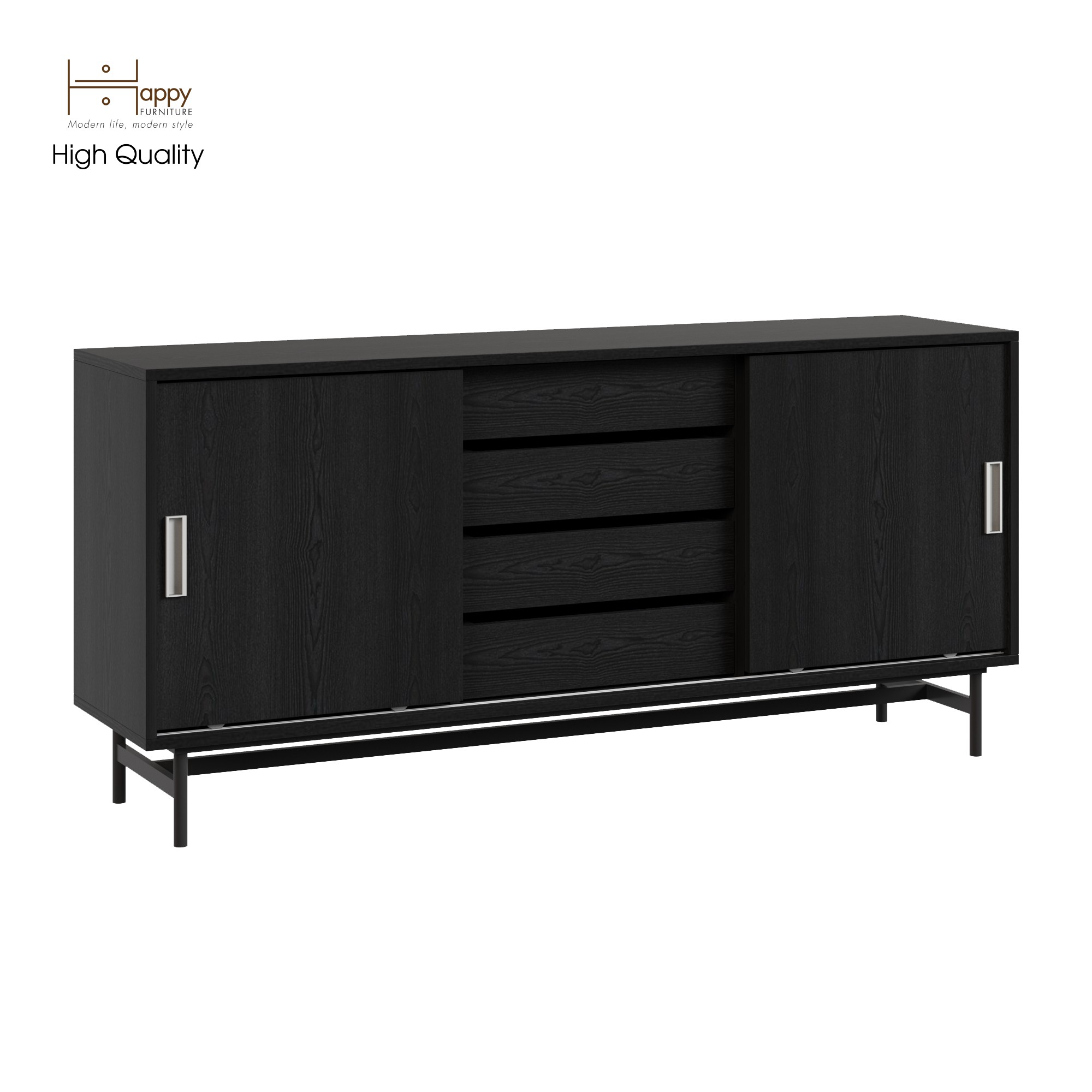 ✨[Happy Home Furniture] LUCA, Tủ lưu trữ 4 ngăn cánh lùa - Chân sắt, 150cm x 36cm x 70cm ( DxRxC), TCL_022