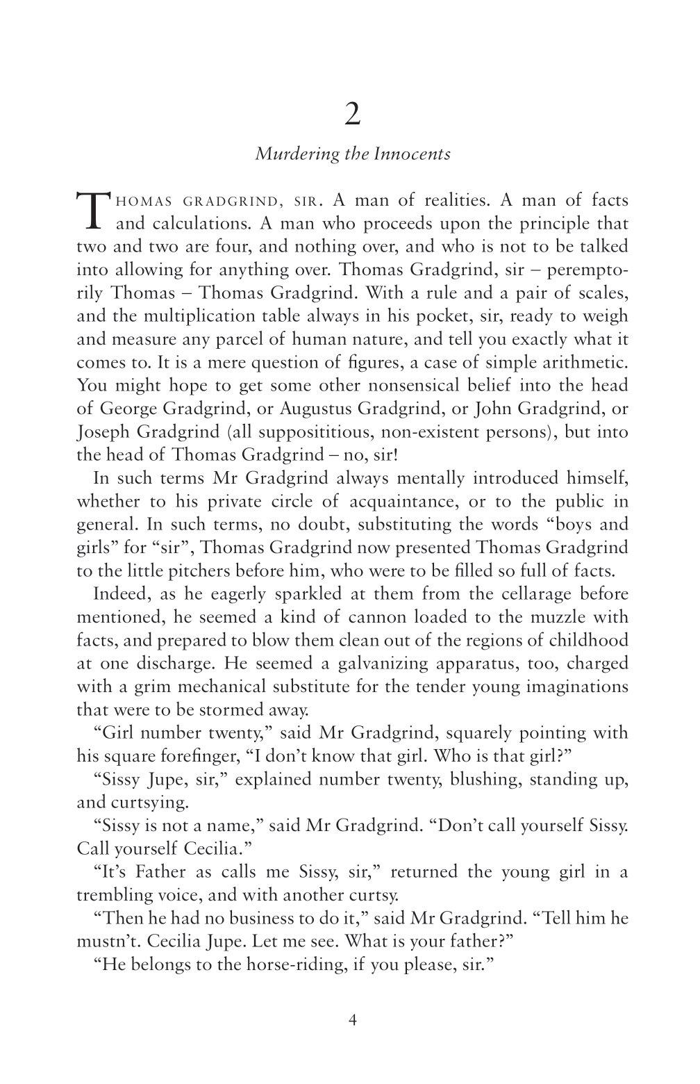 In Hard Times, Dickens illustrates the condition of England through the fictional city of Coketown. Among its inhabitants are Thomas Gradgrind, the utilitarian headmaster who attempts to impose his rigid worldview on his family circle, and the uncaring businessman Mr Bounderby. Their materialist philosophies, as opposed to the world of fancy or imagination, are tested throughout the novel, which also explores workers’ conditions, trade unions and the spurious use of statistics.
