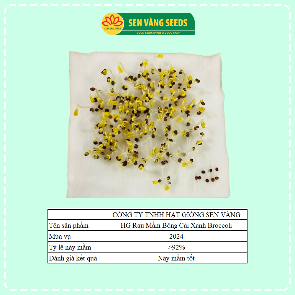 GIỚI THIỆU HẠT GIỐNG RAU MẦM SEN VÀNGHạt giống rau mầm bông cải xanh Broccoli Sen Vàng là loại mầm thân nhuyễn, vị nồng nhẹ, nổi tiếng với nhiều chất dinh dưỡng. Do khả năng nảy mầm cao, dễ trồng, nă...