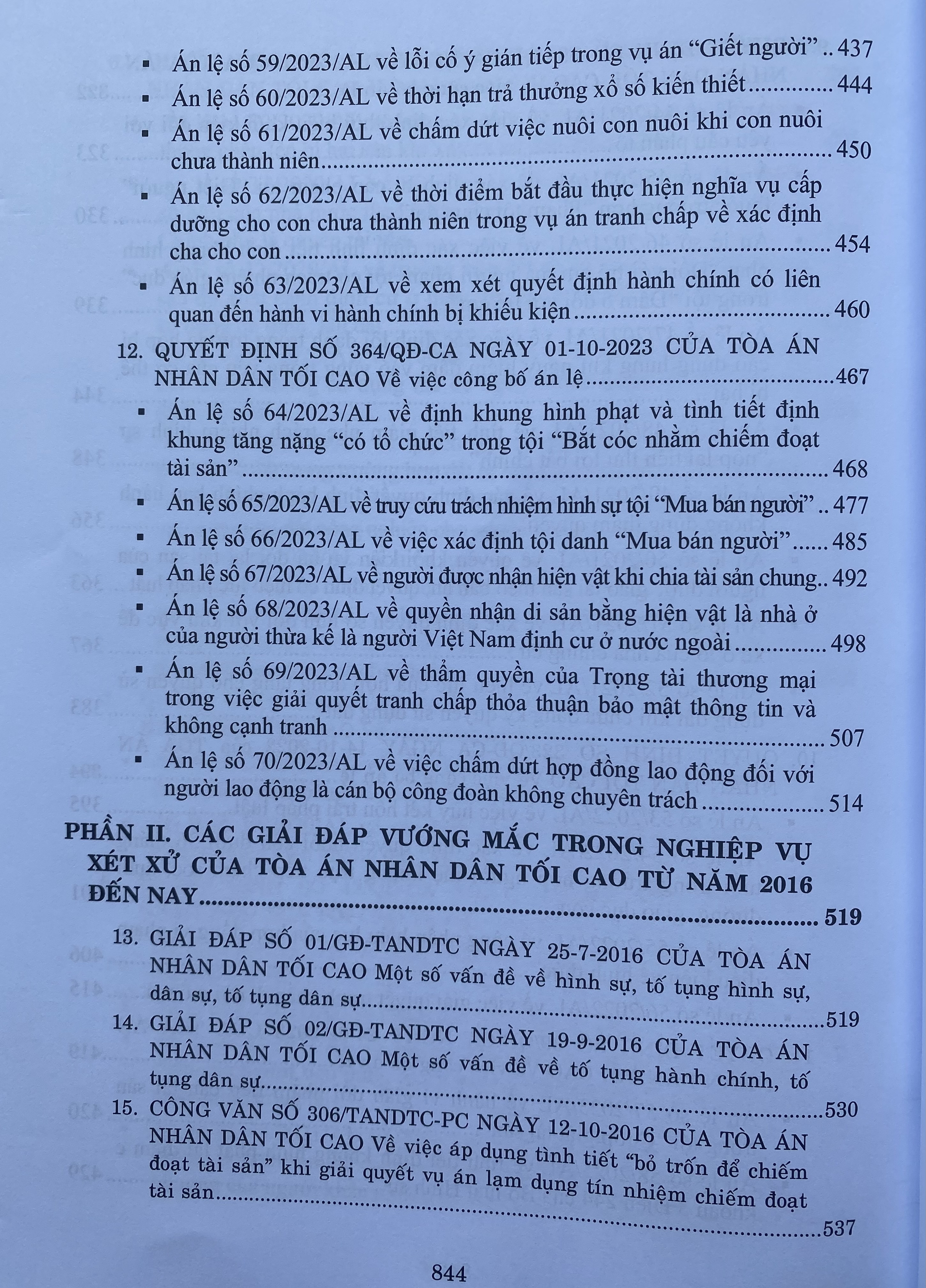 “Hệ thống 70 Án lệ và các Giải đáp vướng mắc trong nghiệp vụ xét xử của Tòa án nhân dân tối cao từ năm 2016 đến nay”.