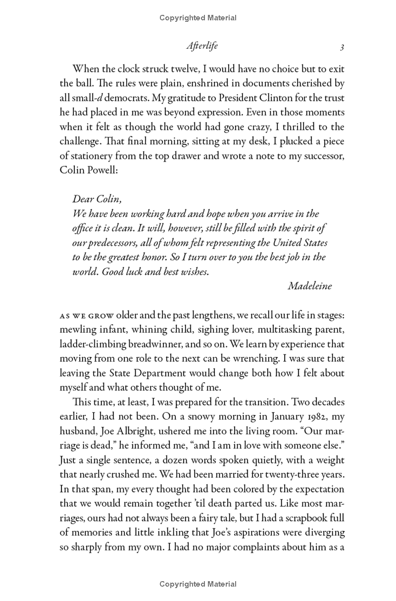 In this revealing, funny, and inspiring memoir, seven-time New York Times bestselling author and former Secretary of State Madeleine Albright—among the most admired and tireless public servants in history—reflects on the challenge of continuing one’s career far beyond the normal age of retirement.