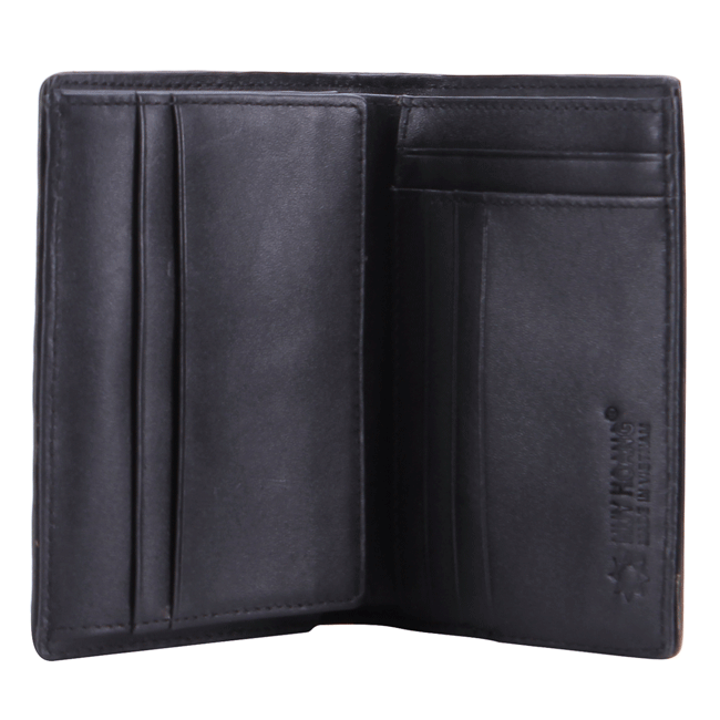 Ví/Bóp nam Huy Hoàng da bò kiểu đứng sọc ngang màu đen 2139