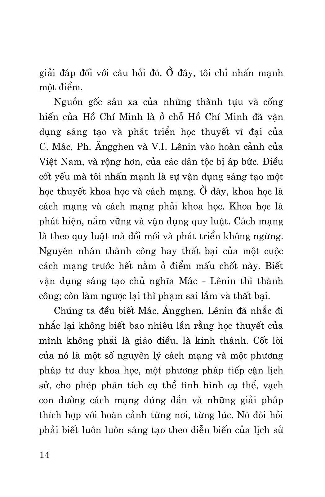 Cuốn sách phân tích ,khẳng định những cống hiến nhiều mặt và di sản tư tưởng, đạo đức, phong cách của Bác Hồ, nhấn mạnh những giá trị quý báu và mang đậm tính thời sự của di sản đó đối với sự nghiệp xây dựng chủ nghĩa xã hội ở nước ta cũng như đối với công cuộc cách mạng ở nhiều nước khác nhau trên thế giới.