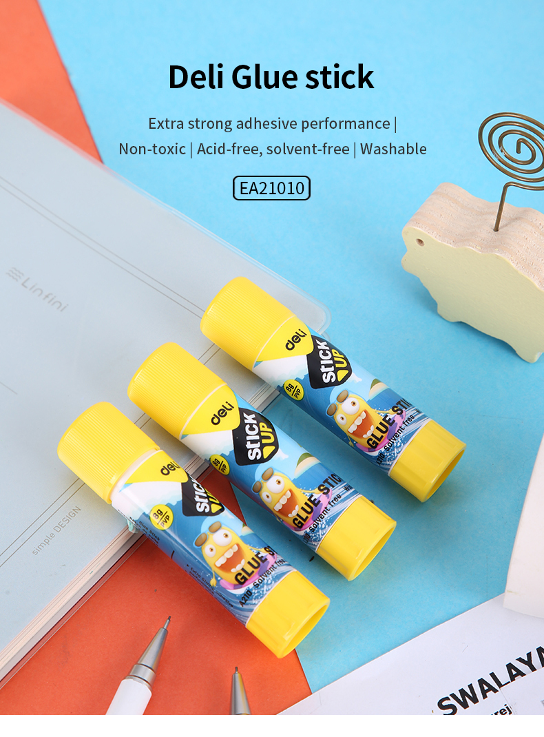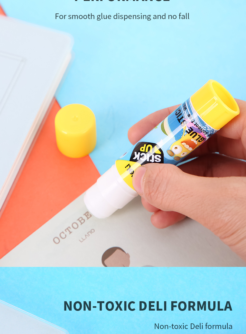 • Không chứa hóa chất độc hại, an toàn khi sử dụng • Dùng làm đồ thủ công, dán giấy, dán bao thư • Đầu dán hồ được thiết kế dạng bằng, cho hồ ra