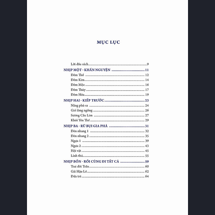 Nương theo tám nhịp: Khấn nguyện - Kiếp trước - Rũ bụi gia phả - Rồi cùng đi tất cả - Còn Em - Điểm trang - Rồi lại đi - Về với ta, ta sẽ có một hành trình xuyên suốt thời không, theo những bước chân phiêu linh của Hoàng Cầm để tuần du miền Kinh Bắc “đầy mê dụ”.