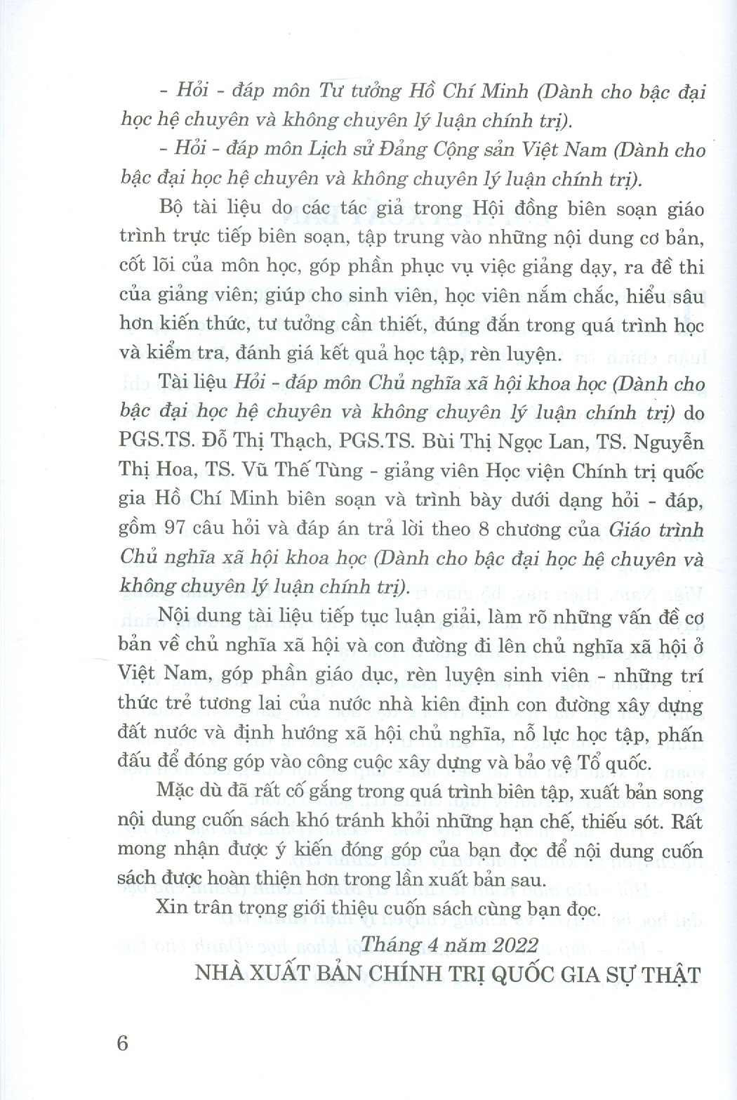 Giáo Trình Chủ Nghĩa Xã Hội Khoa Học (Dành Cho Bậc Đại Học Hệ Chuyên Lý Luận Chính Trị)