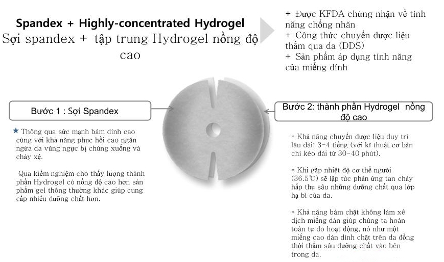 - Tinh chất trong miếng dán vừa tác động vào tế bào bầu ngực phụ nữ vừa kích thích tổ chức & hoạt tính bầu ngực, khai mở hệ thống sinh trưởng bầu ngực .