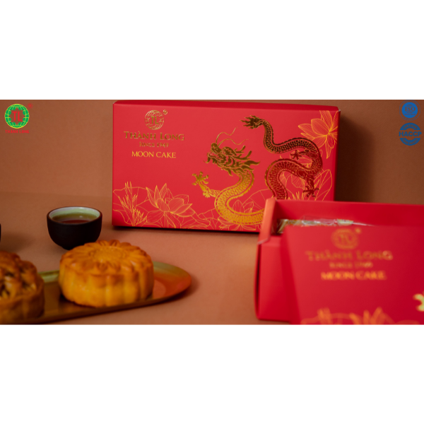 Bộ hộp Bánh trung thu Trường Phúc - Thành Long gồm 4 bánh: Nhân thập cẩm vi cá hải sản ( 220g ) Nhân hạt sen macca ( 220g ) Nhân trà xanh hạnh nhân