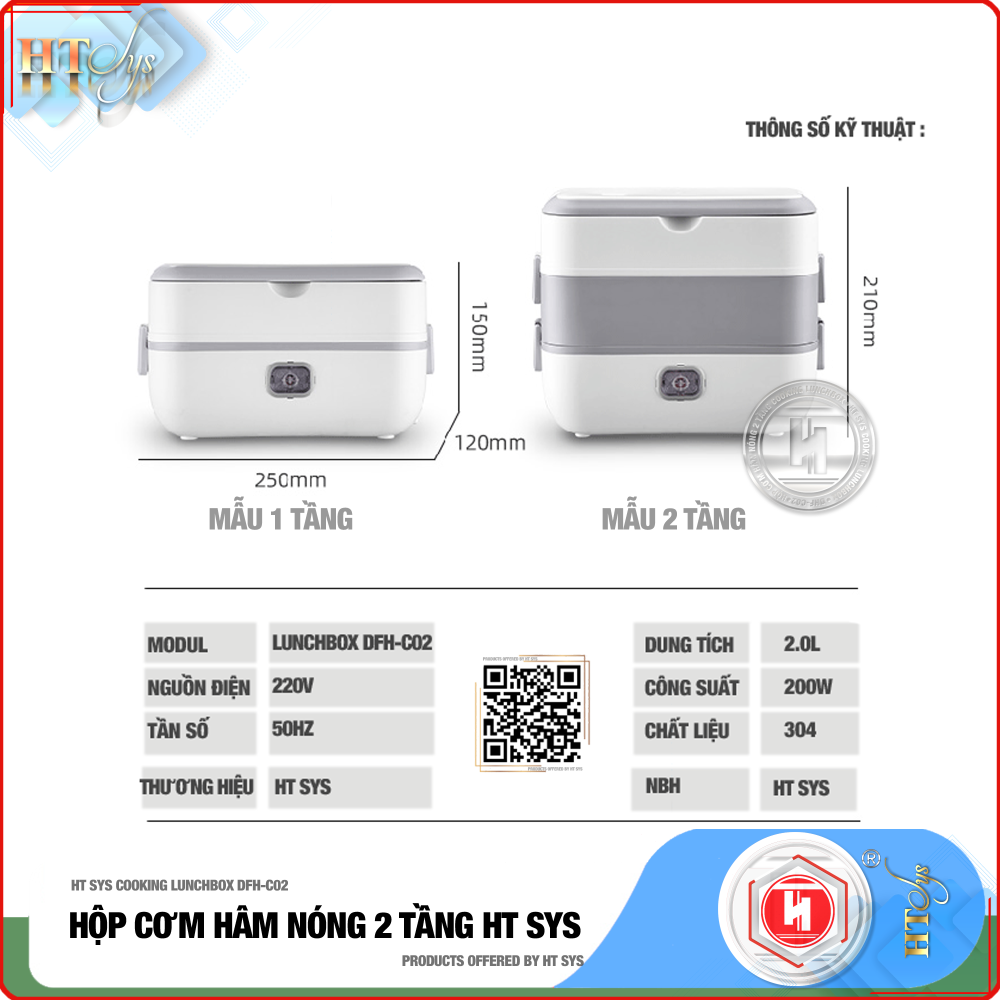 Hộp Cơm Cắm Điện Văn Phòng 2 Tầng 4 Bát Inox HT SYS Đa Năng - Chức Năng Giữ Nhiệt, Hâm Nóng Và Tự Nấu Chín Thức Ăn THÔNG TIN SẢN PHẨM: