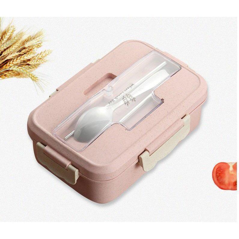 ✨Hộp Đựng Cơm Lúa Mạch 1 Tầng 3 Ngăn Kèm Đũa Và Thìa Inox