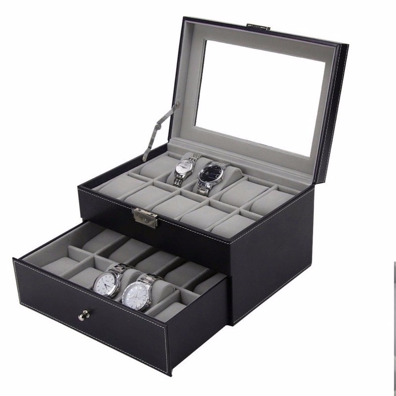Bạn có khoảng 20 chiếc đồng hồ và đang cần mua hộp để đựng cho gọn thì không cần băn khoăn gì thêm nữa, chốt ngay mẫu hộp này nha, thiết kế 2 tầng dày