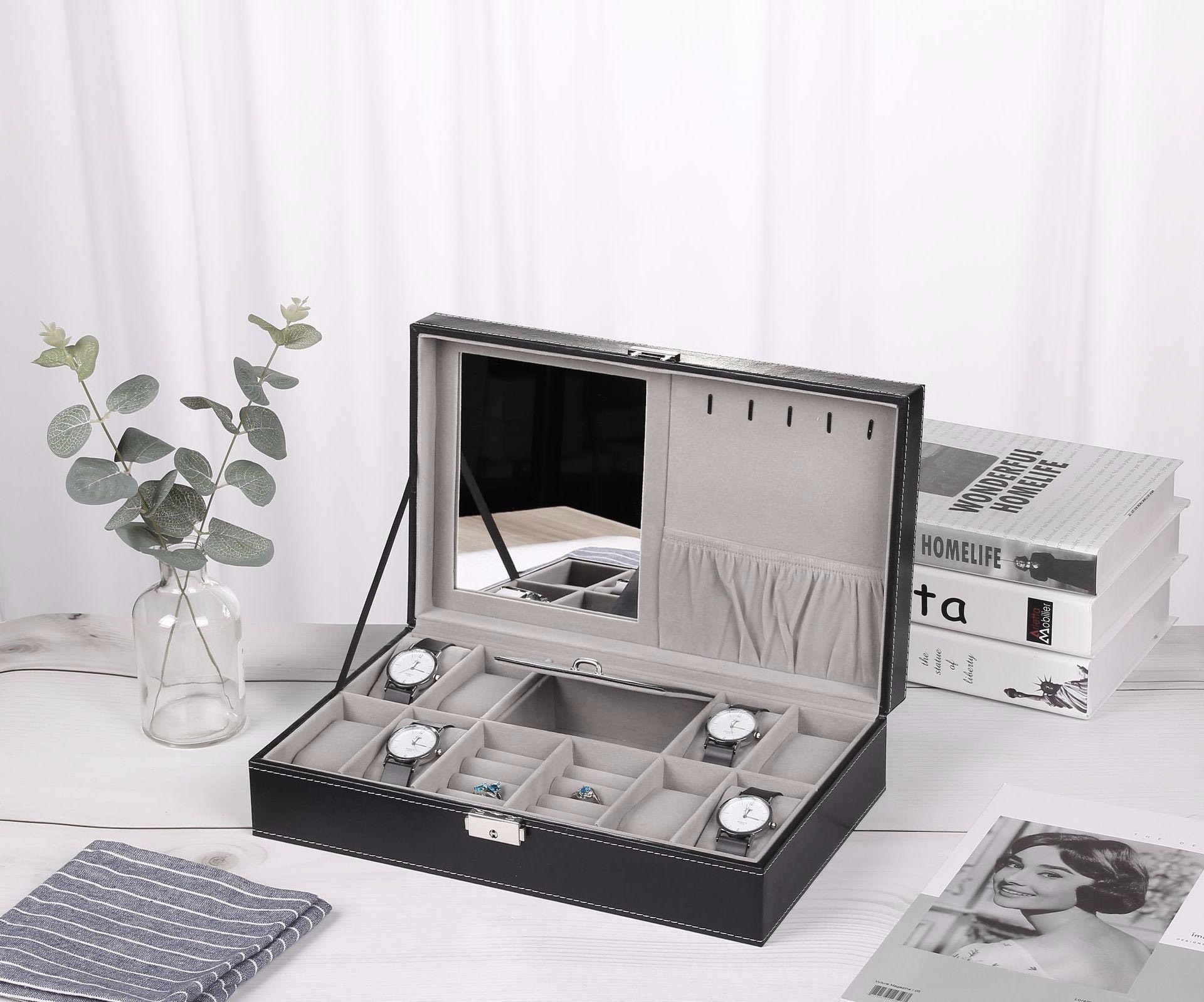 Hộp Đựng Đồng Hồ 8 Ngăn và Trang Sức Có Gương Soi