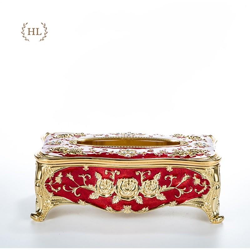 Hộp giấy ăn HADU hợp kim kẽm Hoàng Gia hoa văn thủ công tinh xảo có nắp đậy gắn nam châm cao cấp