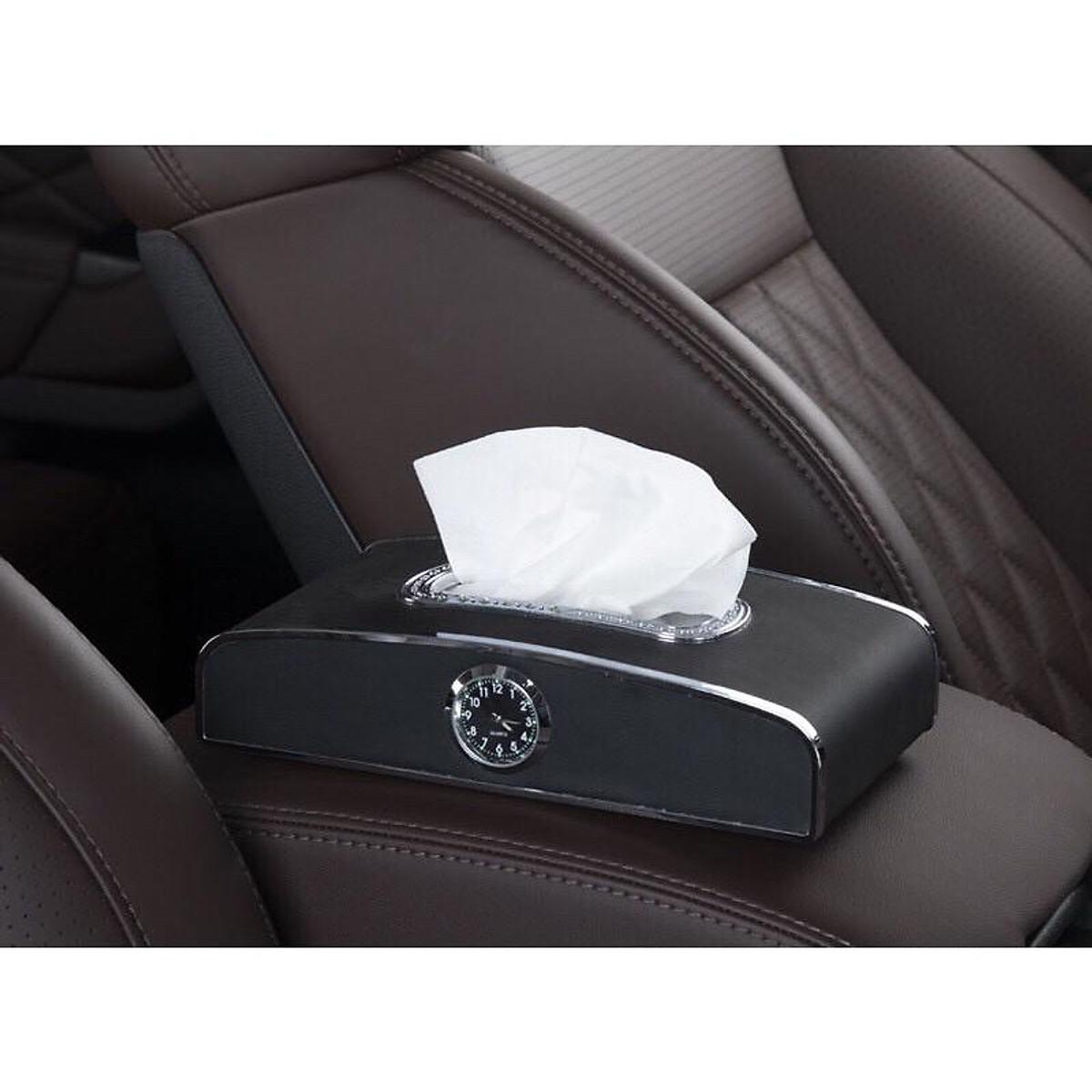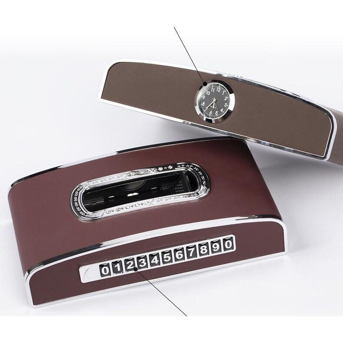 Hộp đựng khăn giấy trên ô tô tích hợp đồng hồ và bảng số điện thoại