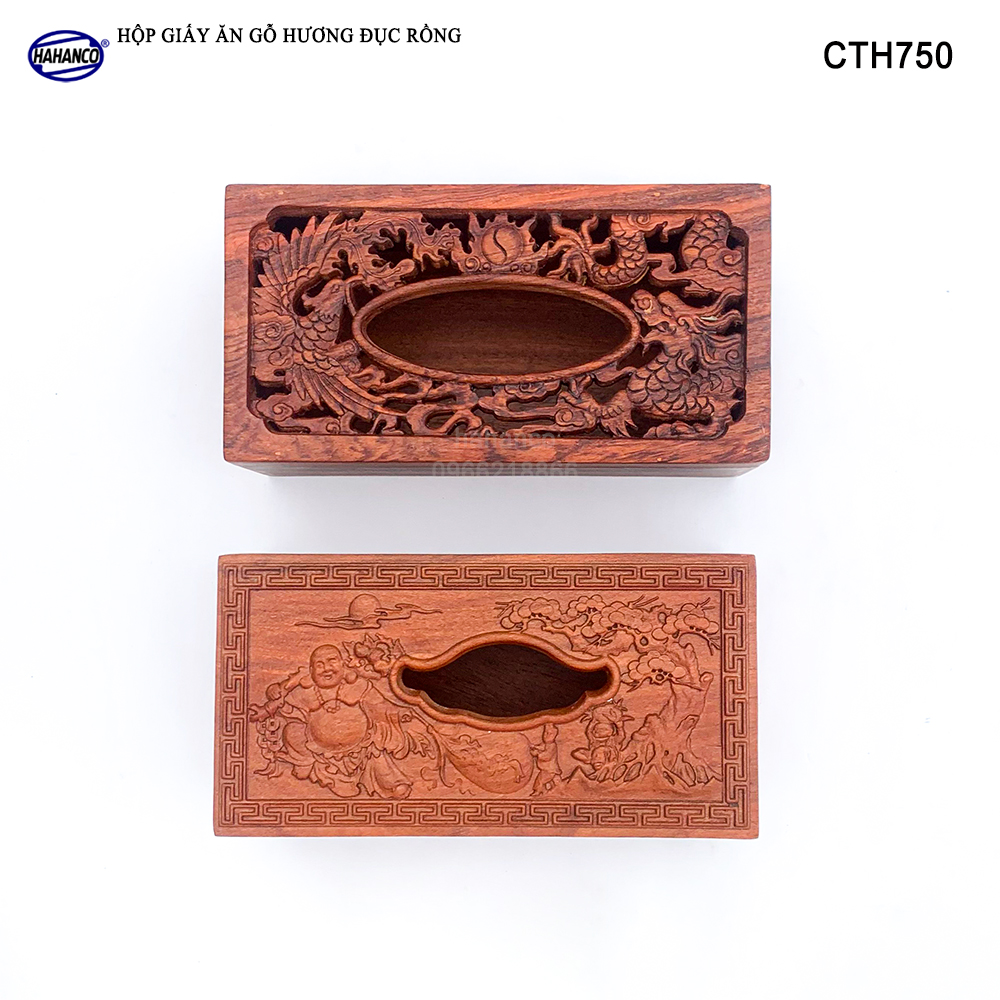 Hộp giấy ăn gỗ hương, đục khắc hoa văn tinh xảo, độc đáo, sang trọng.