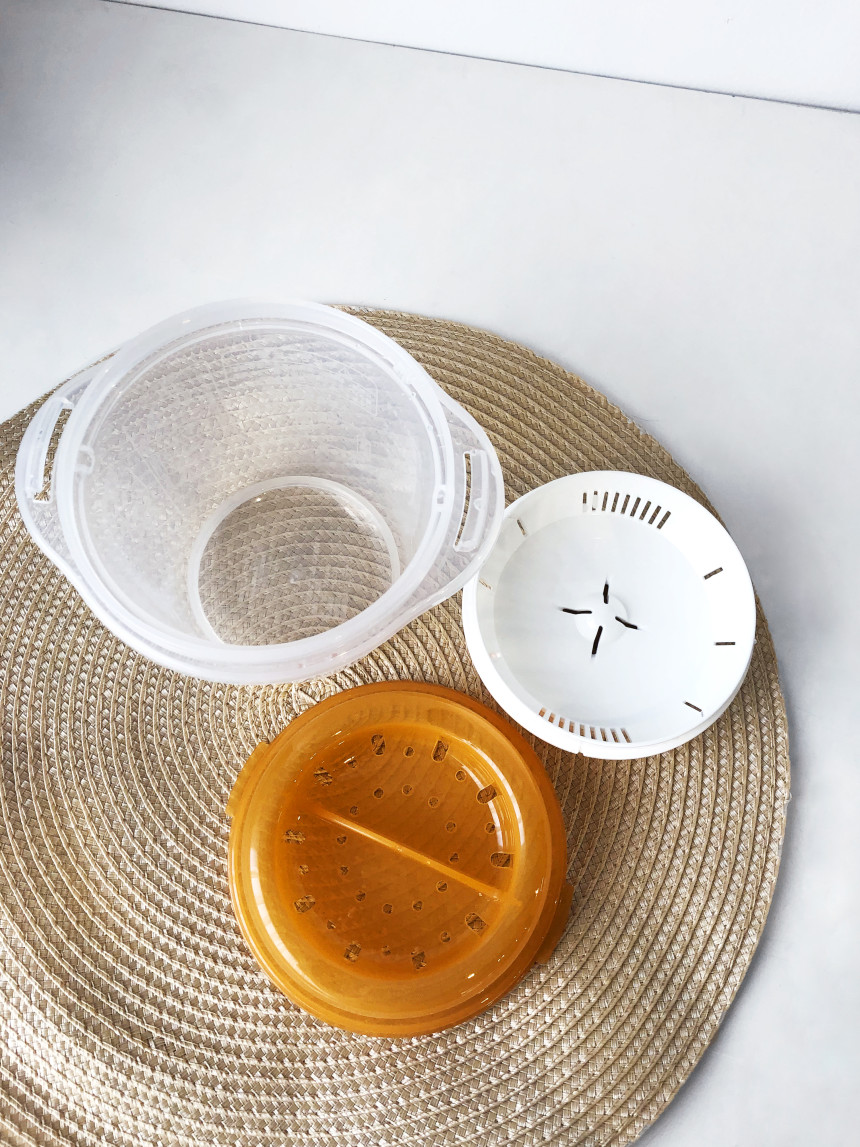 • Cho nước theo tỷ lệ hợp lý, đóng khay chống tràn & nắp ngoài lại, sau đó đặt vào lò vi sóng 500W trong khoảng 10~ 15 phút (tham khảo hướng dẫn cài đặt chế độ chi tiết được in trên hộp)